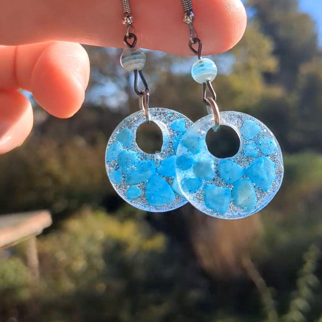 Alle Ohrringe und Ohrsteckern sind aus Epoxidharz hergestellt.